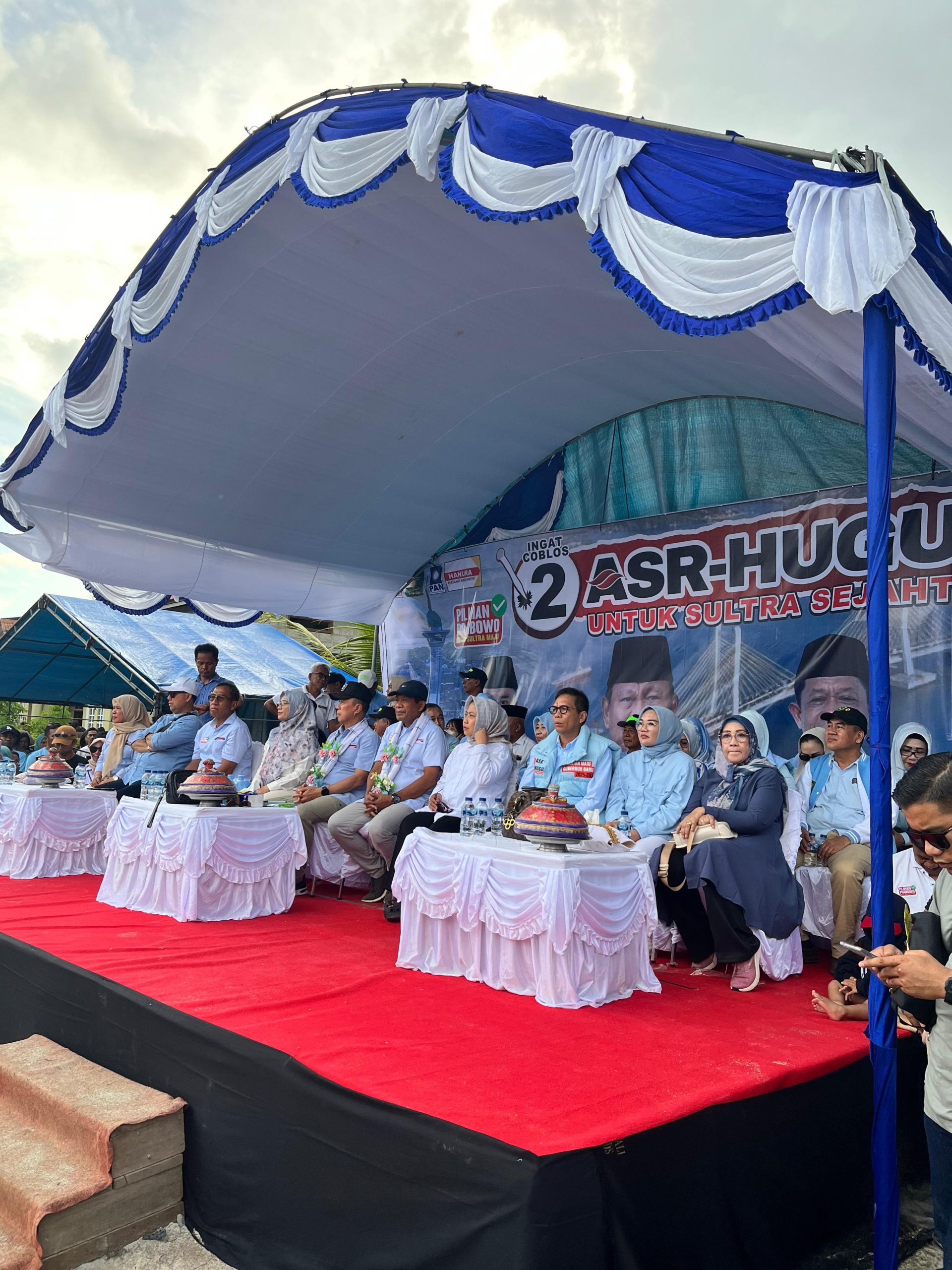 “Pemilihan gubernur Sulawesi Tenggara tinggal dua minggu lagi. Hari ini kita hadirkan sosok yang gagah, berani, dan cerdas. Pak ASR tidak salah memilih Pak Hugua sebagai wakil, mengingat beliau adalah sosok yang telah berhasil memperkenalkan Wakatobi ke kancah internasional,” ujarnya.