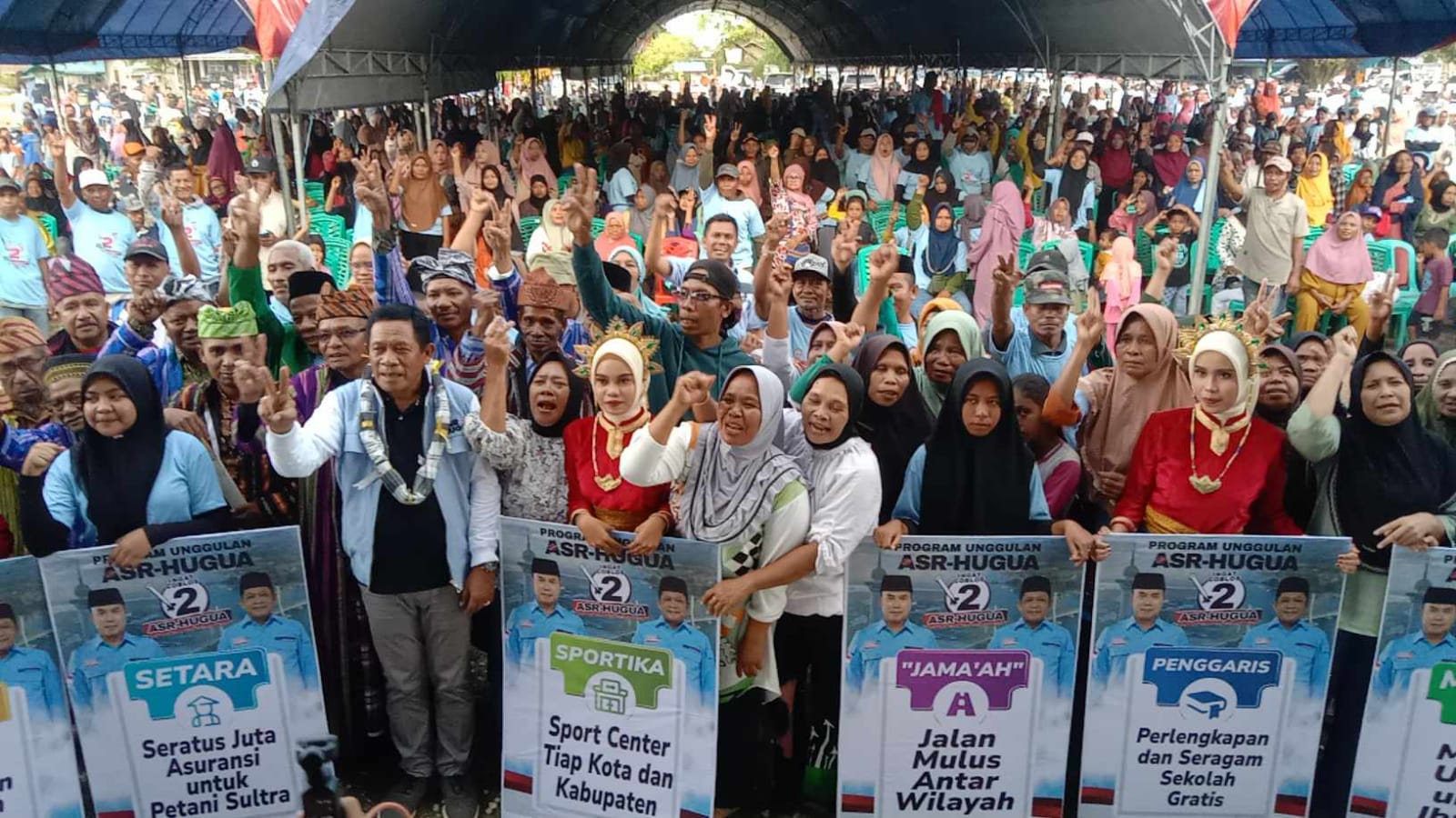 “APBD Sultra ini kan Rp 5,3 Triliun, lalu belanja pegawai mencapai 1,9 Triliun. Berarti masih ada Rp 3,4 Triliun. Jadi, wilayah kepulauan mendapat Rp 1 Triliun dan daratan Rp 2,4 Triliun,” ungkap Hugua, sontak mendapat aplaus sekitar 2.000 simpatisan dan relawan.