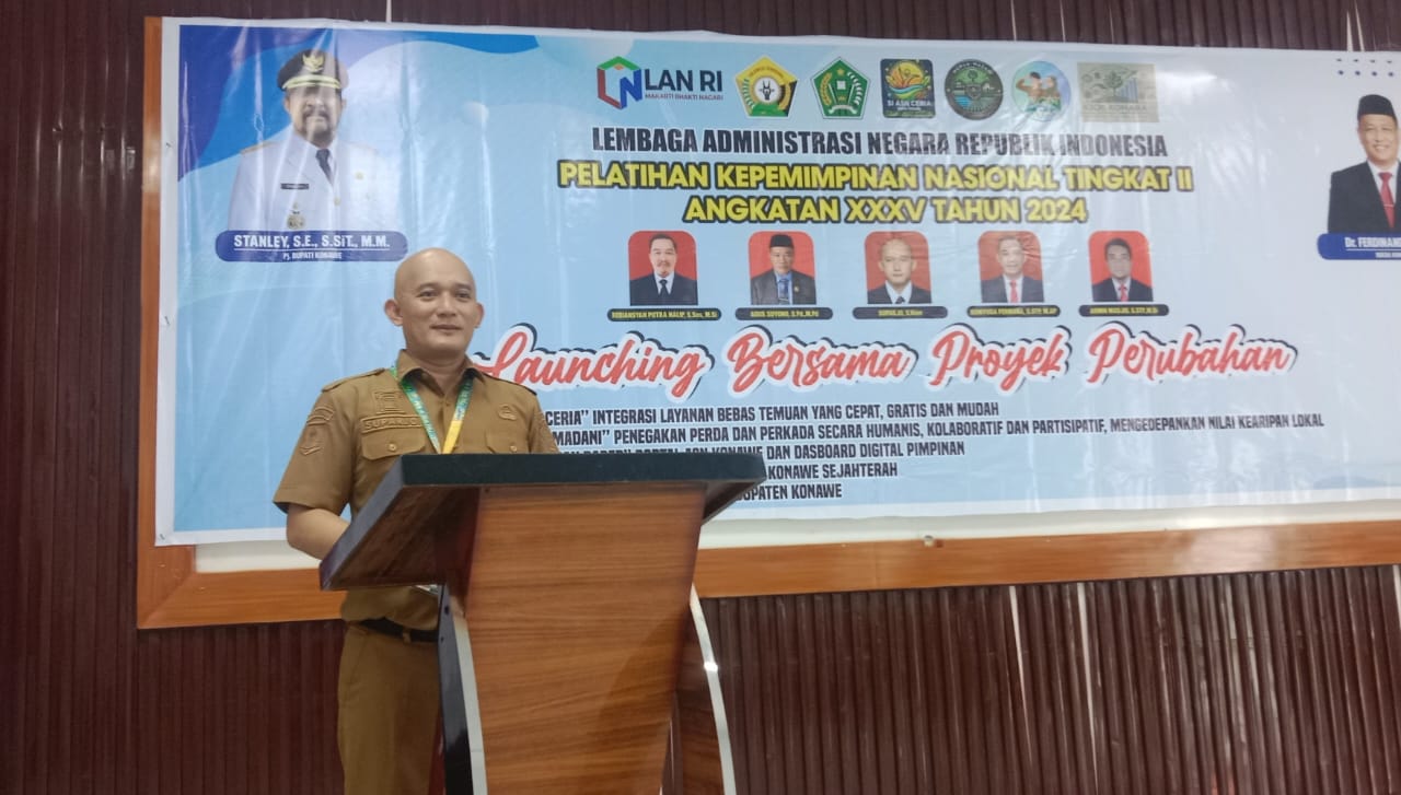 KONAWE, NETJOURNAL.ID – Pemerintah Kabupaten Konawe resmi meluncurkan sejumlah inovasi layanan publik berbasis digital dalam upaya meningkatkan kinerja Aparatur Sipil Negara (ASN) dan pelayanan kepada masyarakat. Peluncuran ini dilakukan bersamaan dengan proyek perubahan Pelatihan Kepemimpinan Nasional (PKN) Tingkat II Angkatan XXXV Tahun 2024, yang digelar di Gedung Aula BKPSDM Konawe, Senin (9/12/2024).