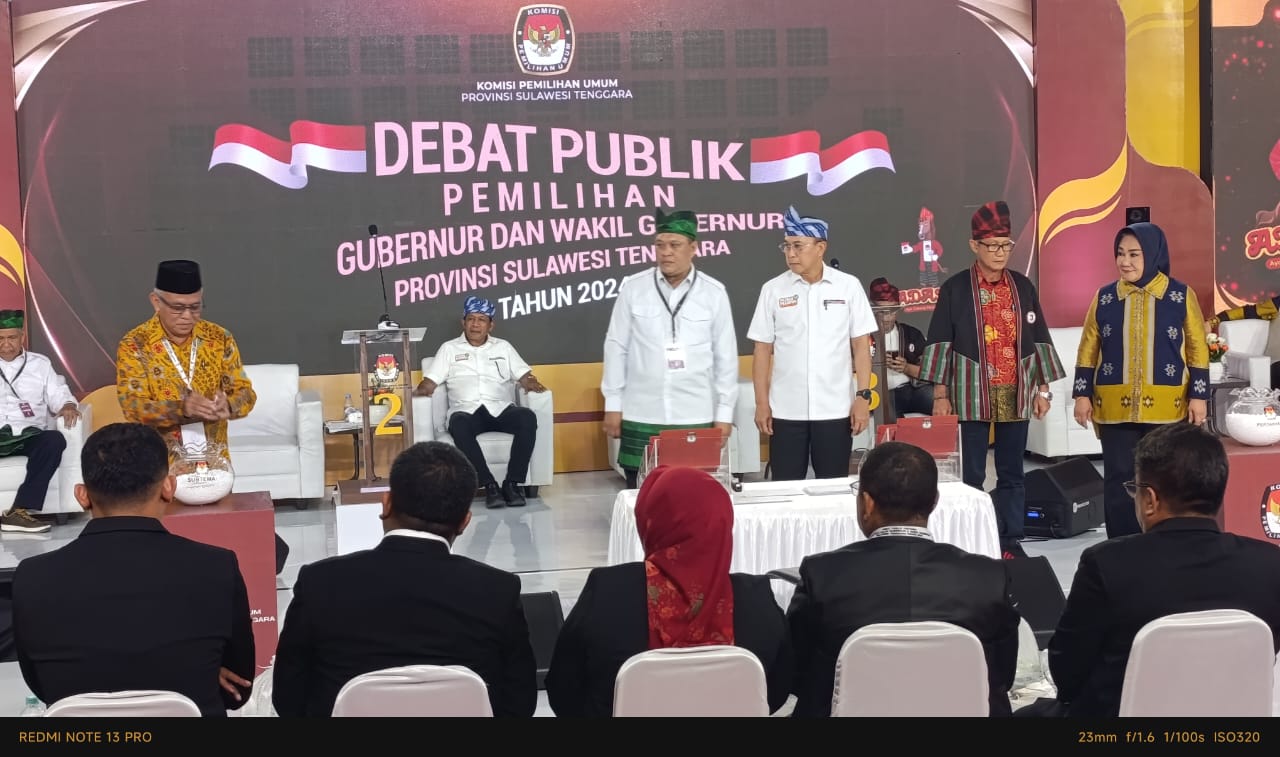 Acara yang dimulai pukul 20.00 WITA tersebut menghadirkan para panelis yang terdiri dari akademisi dan pakar, dipilih langsung oleh Komisi Pemilihan Umum (KPU) Sultra. Di antara para panelis, Rektor Universitas Halu Oleo (UHO), Prof. Muhammad Zamrun Firihu, serta pakar keuangan dan hukum sumber daya alam, memberikan pertanyaan tajam dan mendalam untuk menguji kesiapan para kandidat.