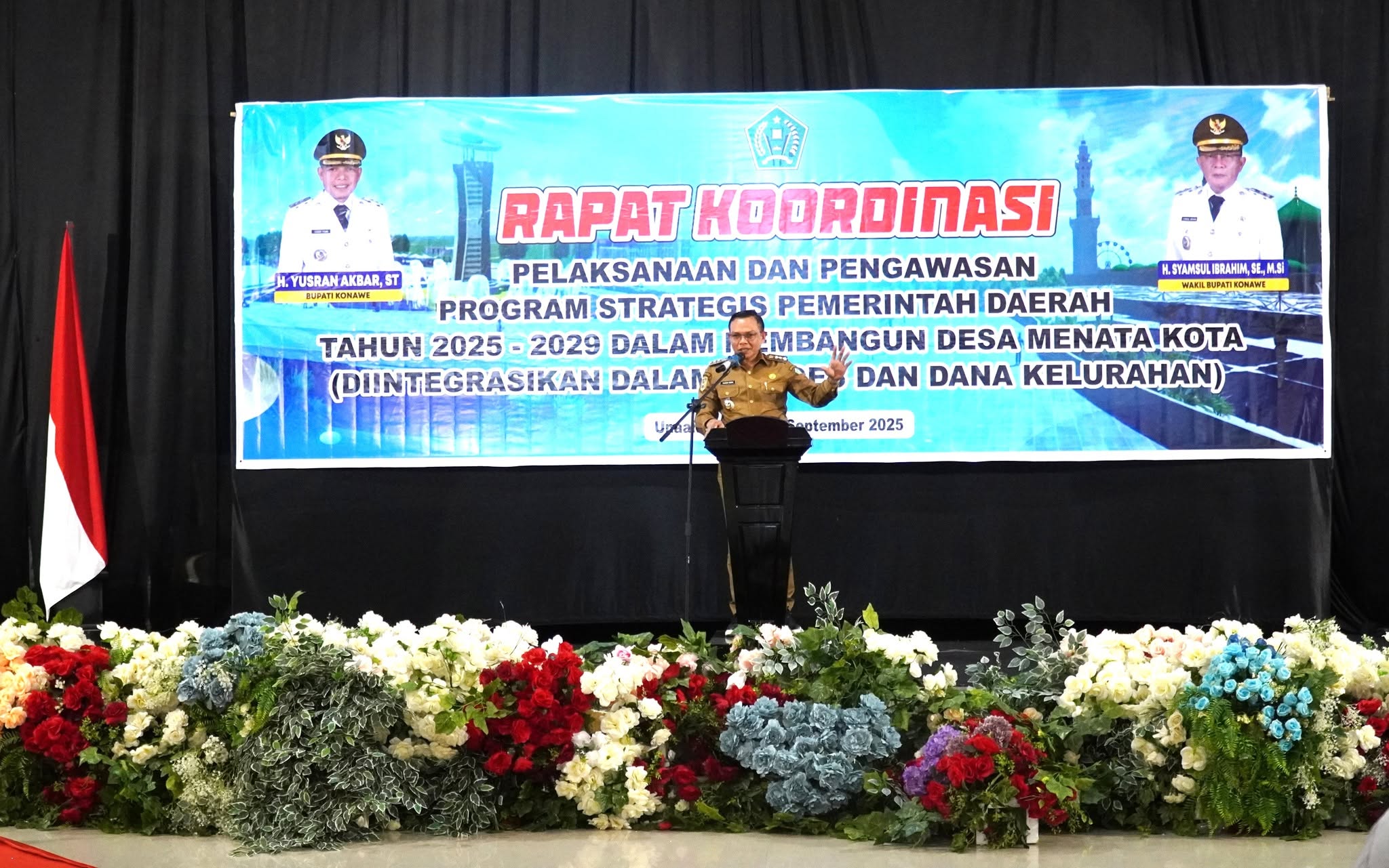 “Pemerintah Kabupaten Konawe berkomitmen membangun dari desa dan menata kota secara terarah, sehingga pembangunan tidak hanya terpusat di perkotaan, tetapi juga menyentuh langsung masyarakat desa. Integrasi program melalui APBDes dan Dana Kelurahan adalah kunci agar hasilnya tepat sasaran,” ujar Bupati Yusran Akbar.