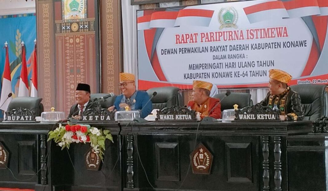 KONAWE, NETJOURNAL.ID – Dewan Perwakilan Rakyat Daerah (DPRD) Kabupaten Konawe mengadakan Rapat Paripurna Istimewa untuk merayakan Hari Ulang Tahun (HUT) ke-64 Kabupaten Konawe pada hari Sabtu (2/03/2024).